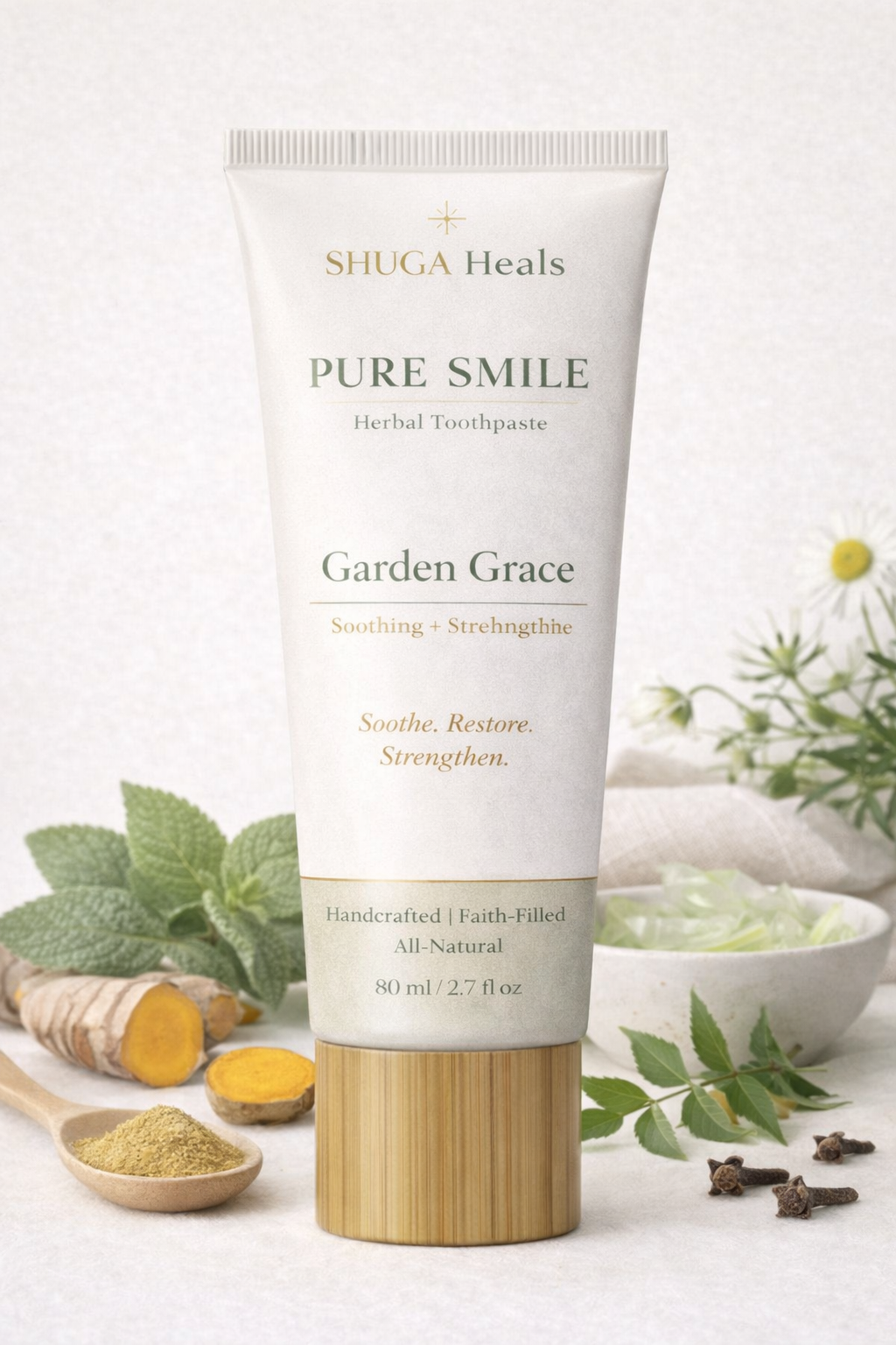 Soothe and strengthen with Garden Grace Herbal Toothpaste. A gentle blend of chamomile, sage, aloe, and minerals designed for sensitive teeth and gum care—fluoride-free and calming.