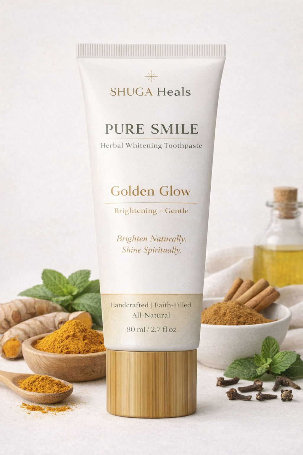 Naturally brighten your smile with Golden Glow Herbal Whitening Toothpaste. Crafted with turmeric, clove, and mineral polishers for gentle stain removal—fluoride-free and clean.